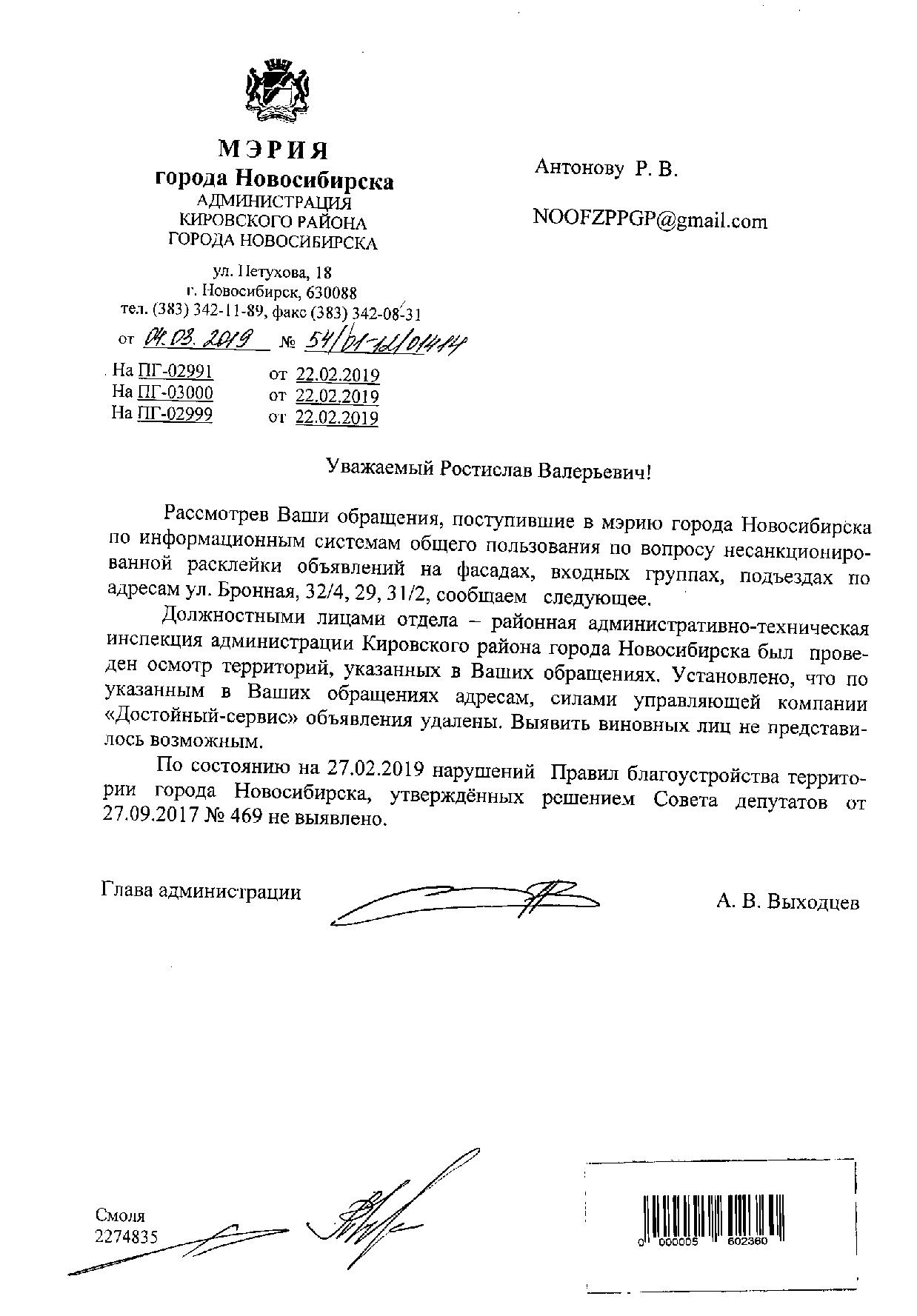 Номер жалобы:50075 Тип жалобы:Прочее Название объекта: Регион:Новосибирская область Город:Новосибирск Адрес:Бронная улица, 31/2 Описание жалобы:Объявления на фасаде дома Статус: