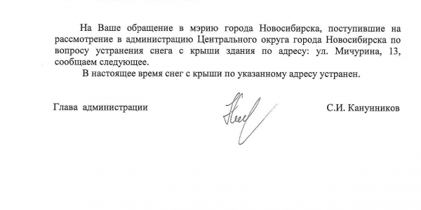 Номер жалобы:46489 Тип жалобы:Иные проблемы ЖКХ Название объекта: Регион:Новосибирская область Город:Новосибирск Адрес:Новосибирск, улица Мичурина, 5 Описание жалобы:Снег на крыше дома Статус: