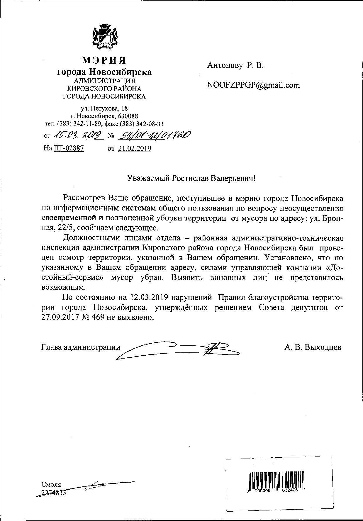 Номер жалобы:50012 Тип жалобы:Прочее Название объекта: Регион:Новосибирская область Город:Новосибирск Адрес:Новосибирск, Бронная улица, 22/2 Описание жалобы:Не убран мусор рядом с домом Статус: