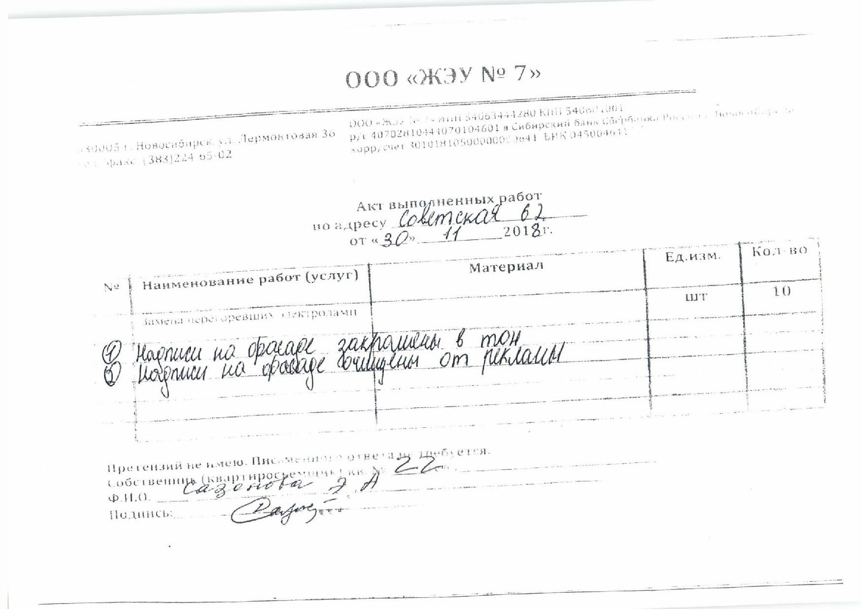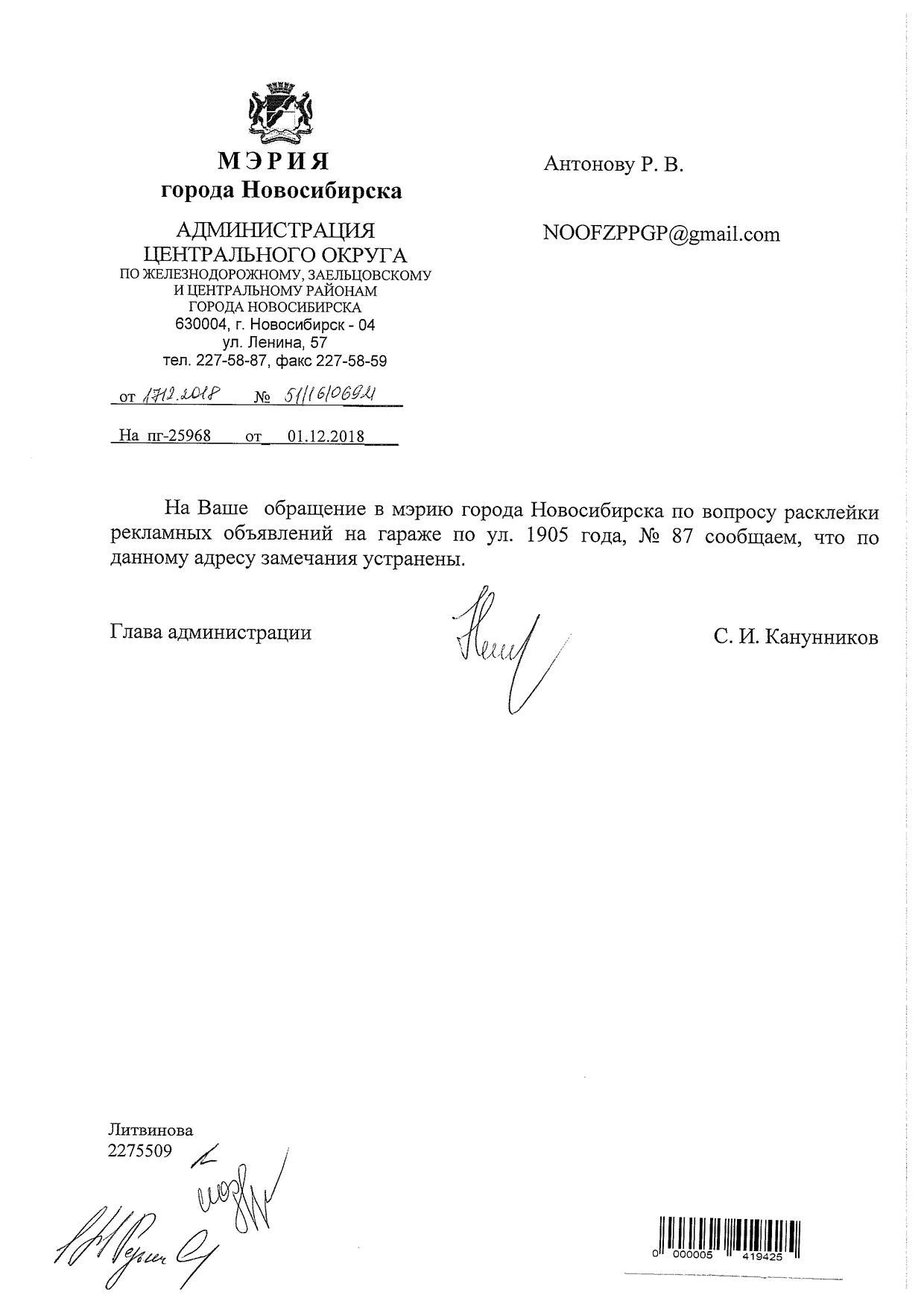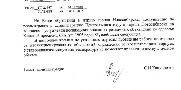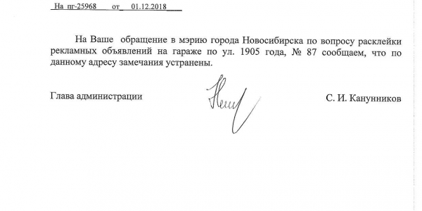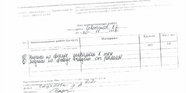Номер жалобы:46323 Тип жалобы:Иные проблемы ЖКХ Название объекта: Регион:Новосибирская область Город:Новосибирск Адрес:Новосибирск, улица 1905 года, 85 Описание жалобы:Объявления на хозяйственном корпусе Статус: