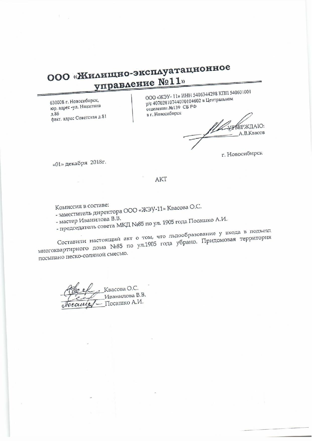 Номер жалобы:46322 Тип жалобы:Иные проблемы ЖКХ Название объекта: Регион:Новосибирская область Город:Новосибирск Адрес:Новосибирск, улица 1905 года, 85 Описание жалобы:Гололёд перед подъездом дома Статус: