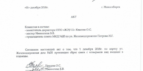 Номер жалобы:46321 Тип жалобы:Иные проблемы ЖКХ Название объекта: Регион:Новосибирская область Город:Новосибирск Адрес:Новосибирск, улица 1905 года, 85 Описание жалобы:Снег на козырьках подъезда Статус: