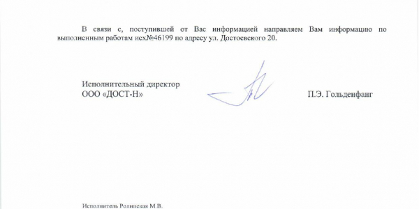 Номер жалобы:46199 Тип жалобы:Иные проблемы ЖКХ Название объекта: Регион:Новосибирская область Город:Новосибирск Адрес:Новосибирск, улица Достоевского, 20 Описание жалобы:Объявления в неположенном месте Статус: