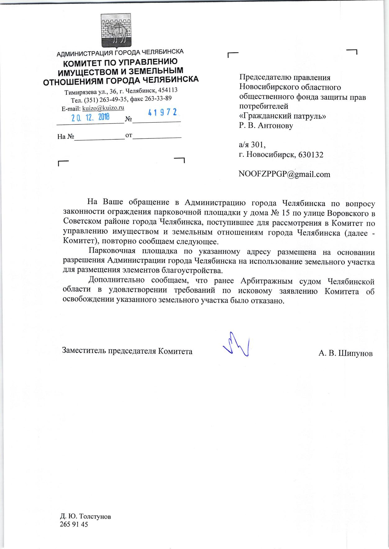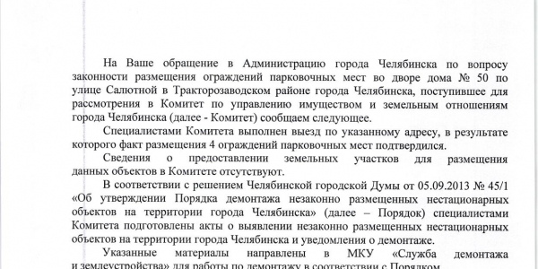 Номер жалобы:45998 Тип жалобы:Иные проблемы ЖКХ Название объекта:Администрация Регион:Челябинская область Город:Челябинск Адрес:ул Воровского, 15 Описание жалобы:Прошу проверить законность огражденной парковки у дома Воровского 15. Из-за нее для пешеходов имеется очень узкий тротуар шириной 1 метр. Статус: