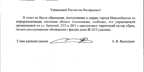 Номер жалобы:49887 Тип жалобы:Прочее Название объекта:Управляющая Компания Регион:Новосибирская область Город:Новосибирск Адрес:ул Бронная, 22/3 Описание жалобы:Объявления