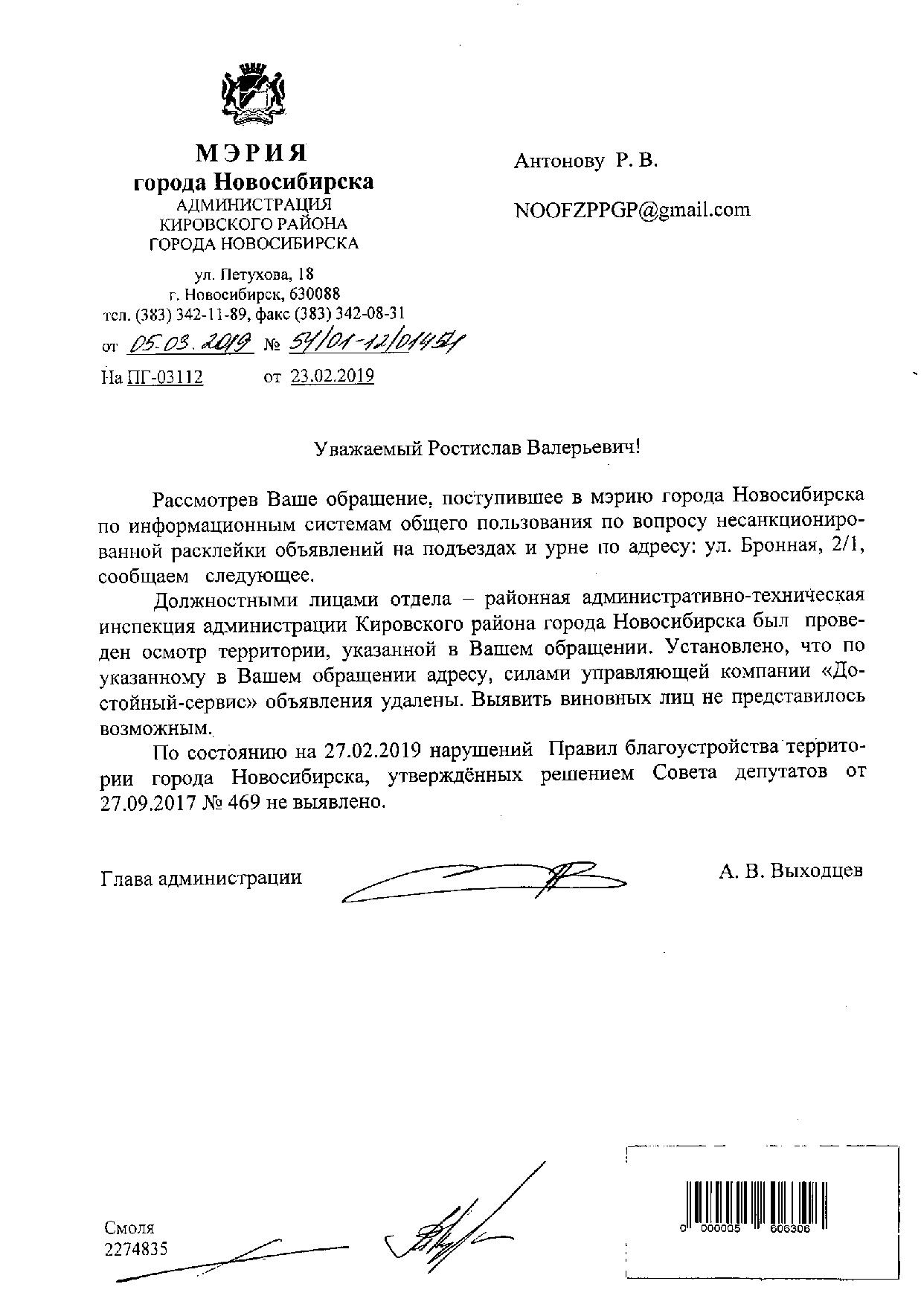 Номер жалобы:49853 Тип жалобы:Прочее Название объекта:Управляющая Компания Регион:Новосибирская область Город:Новосибирск Адрес:ул Бронная, 2/1 Описание жалобы:Объявления в неположенном месте ( мусорный бак и стены)