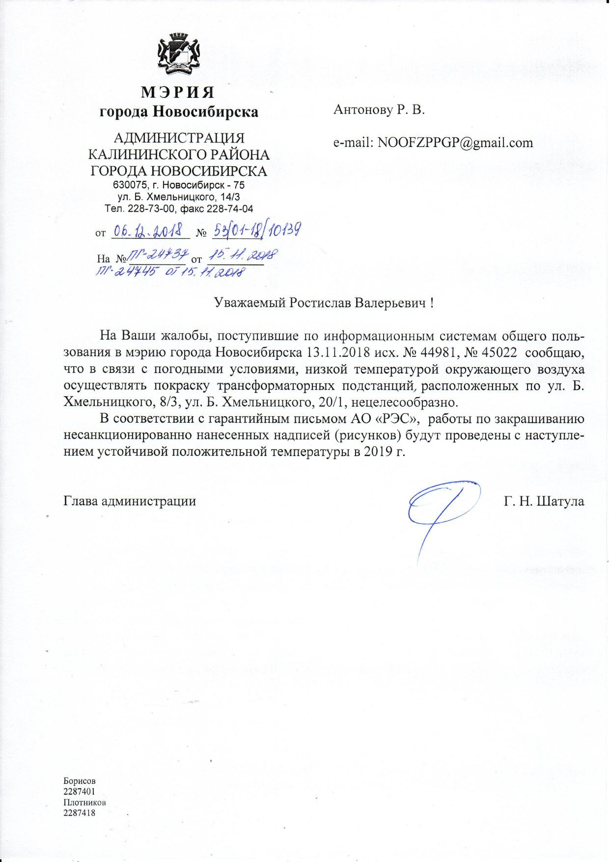 Номер жалобы:45022 Тип жалобы:Иные проблемы ЖКХ Название объекта:Управляющая Компания Регион:Новосибирская область Город:Новосибирск Адрес:ул Богдана Хмельницкого, 20/1 Описание жалобы:Надписи на хозяйственном корпусе Статус: