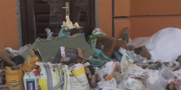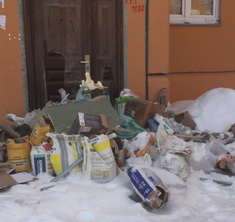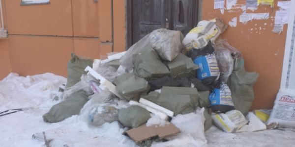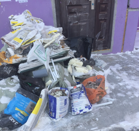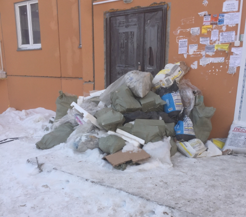 Мусор около подъезда, мусорные баки есть во дворе Статус: