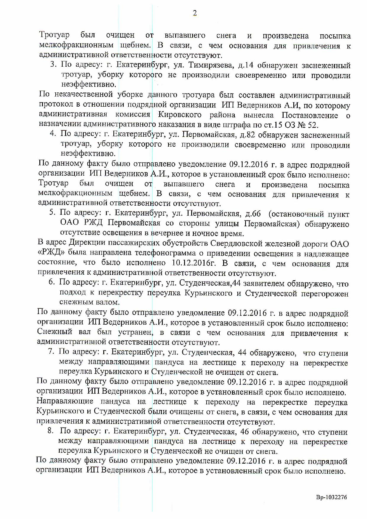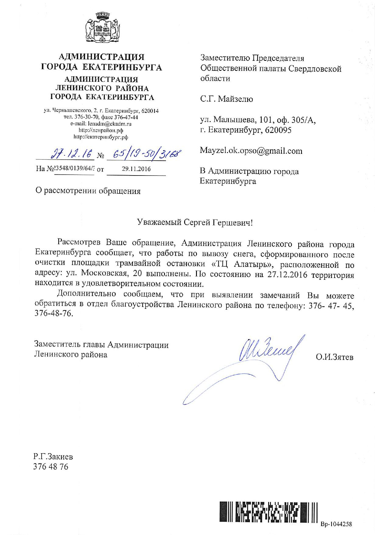 Номер жалобы:10951 Тип жалобы:Качество уборки снега на тротуарах Название объекта:Администрация Екатеринбурга Регион:Свердловская область Город:Екатеринбург Адрес:ул. Московская, 5311 Описание жалобы:На перекрёстке Московской и Радищева отсутствует уборка снега на тротуаре, ведущем от перехода через Радищева к остановке «Московская» в направлении «Куйбышева», и на тротуаре, ведущем от перехода через Радищева к остановке «Московская» 33-го маршрута в направлении остановки «Радищева». Статус: