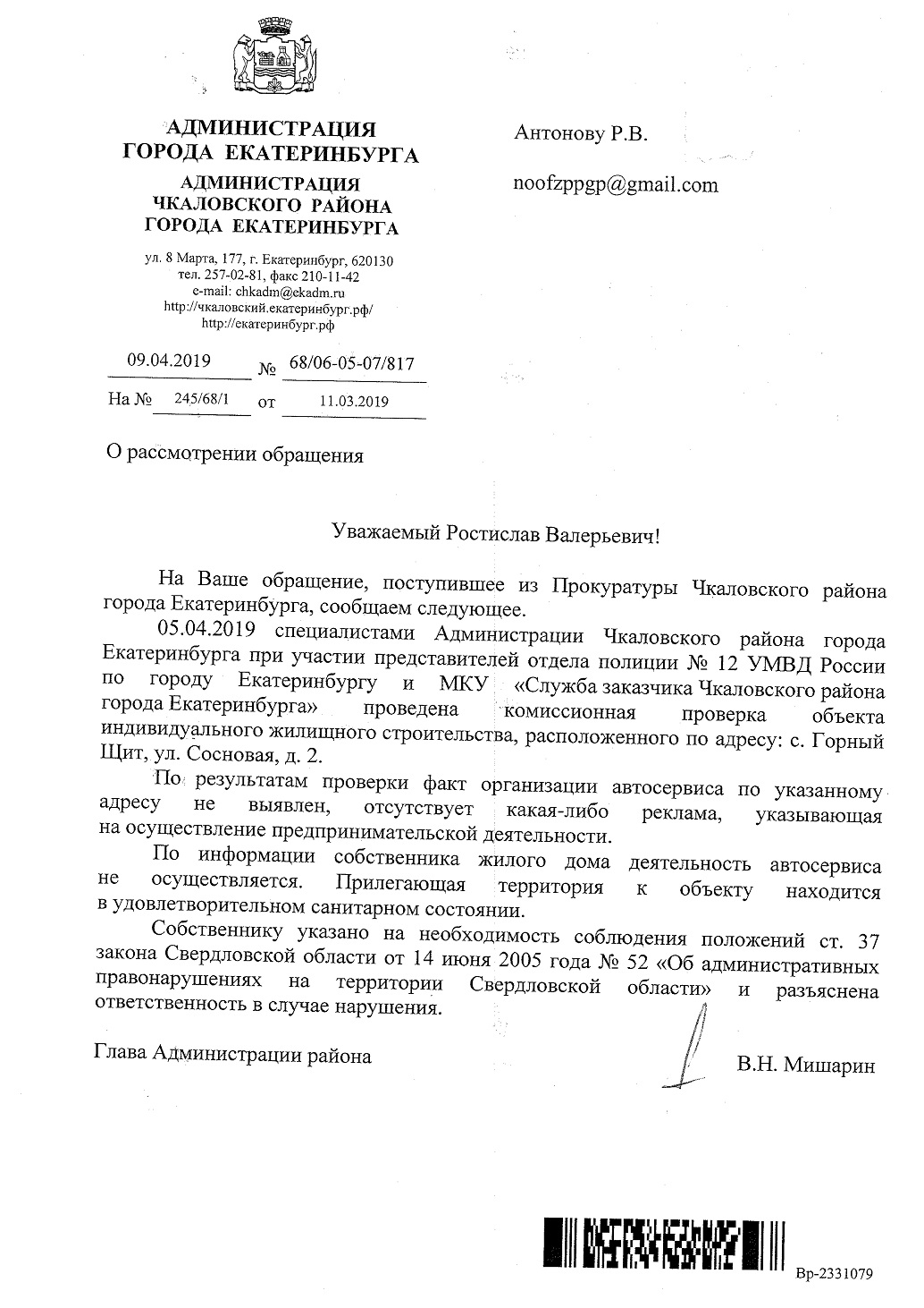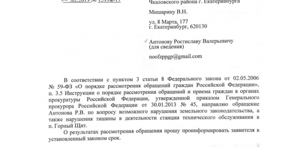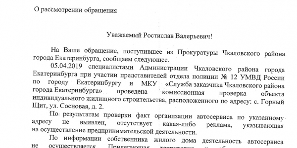 Добрый день! ПРОШУ Вас разобраться законно ли находится автосервиспо по адресу г. Екатеринбург п. Горный щит ул. Сосновая 2.