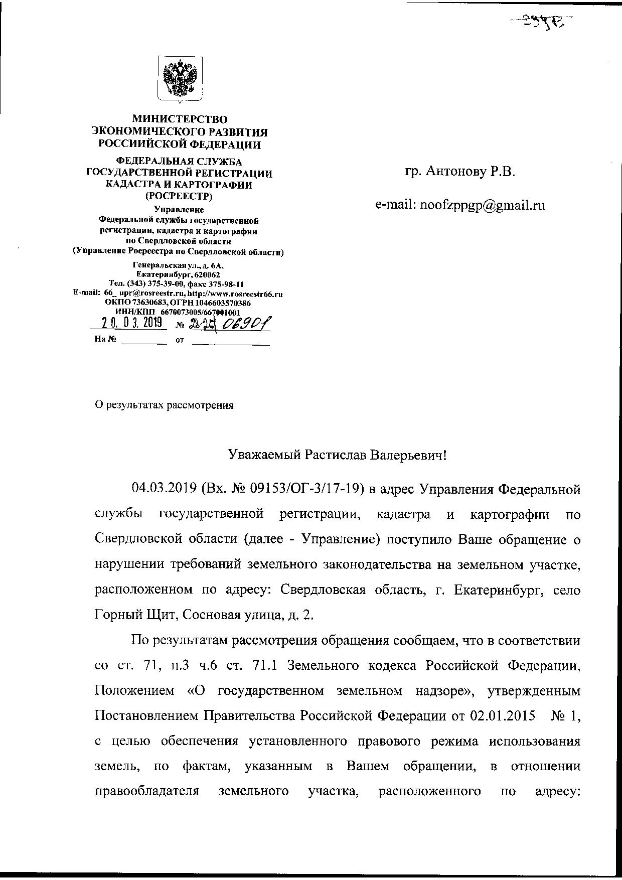 Номер жалобы:49281 Тип жалобы:Прочее Название объекта: Регион:Свердловская область Город:село Горный Щит Адрес:село Горный Щит, Сосновая улица, 2 Описание жалобы:ОТПРАВЛЕНО В ПРОКУРАТУРУ 30.04.19