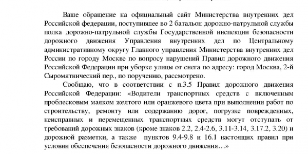 Номер жалобы:49307 Тип жалобы:Прочее Название объекта: Регион:Москва Город:Москва Адрес:3-й Сыромятнический переулок Описание жалобы:Снегоуборочная техника стояла на парковке для инвалидов на 3-ем Сыромятническом переулке в сторону с Бизнес-центром Дельта Плаза (2-й Сыромятнический переулок, 1). Примерное время 10:30. Статус: