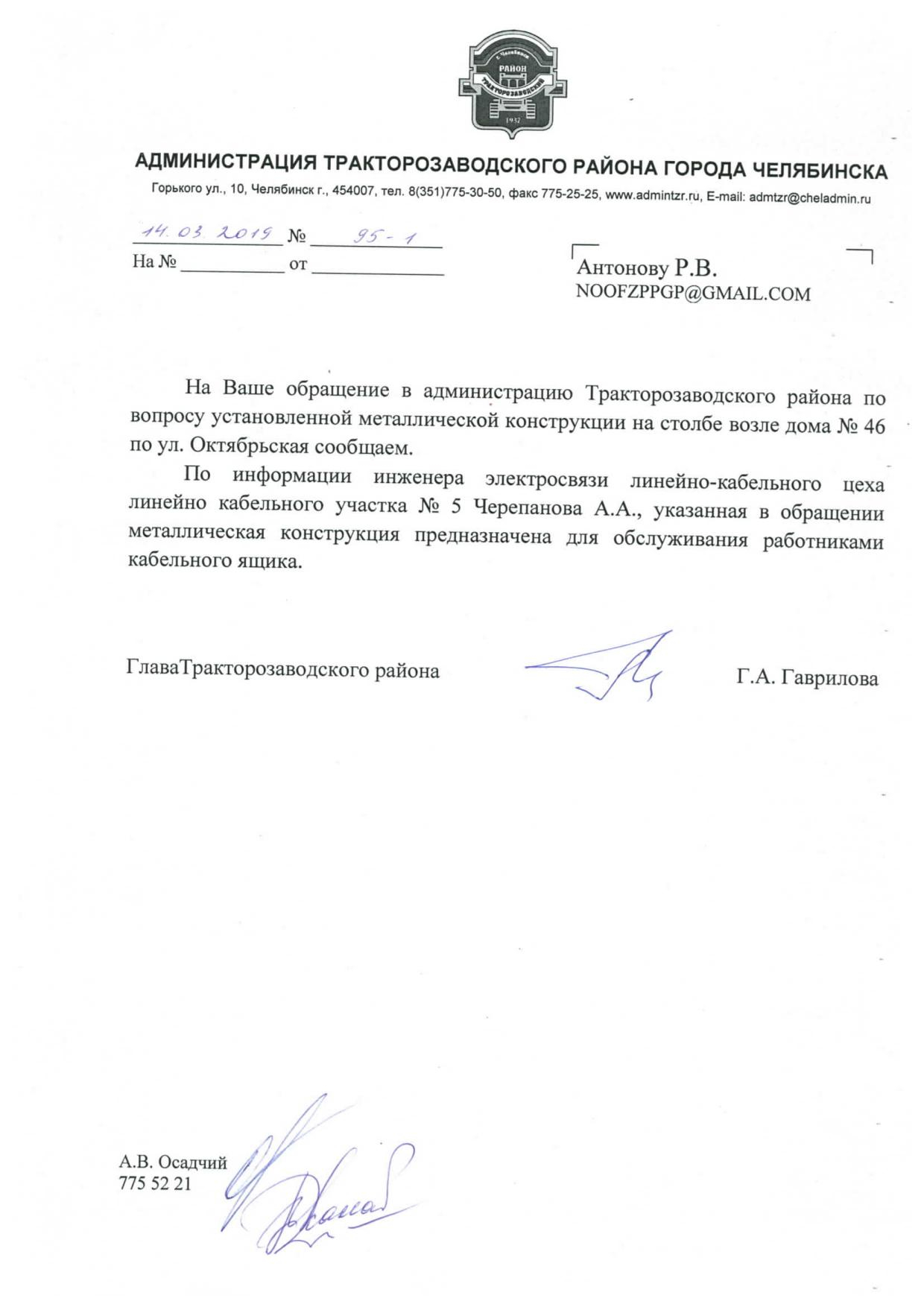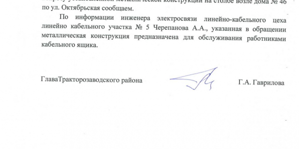 Номер жалобы:49187 Тип жалобы:Прочее Название объекта: Регион:Челябинская область Город:Челябинск Адрес:Октябрьская улица, 46 Описание жалобы:248-13 Непонятная конструкция на столбе. Статус: