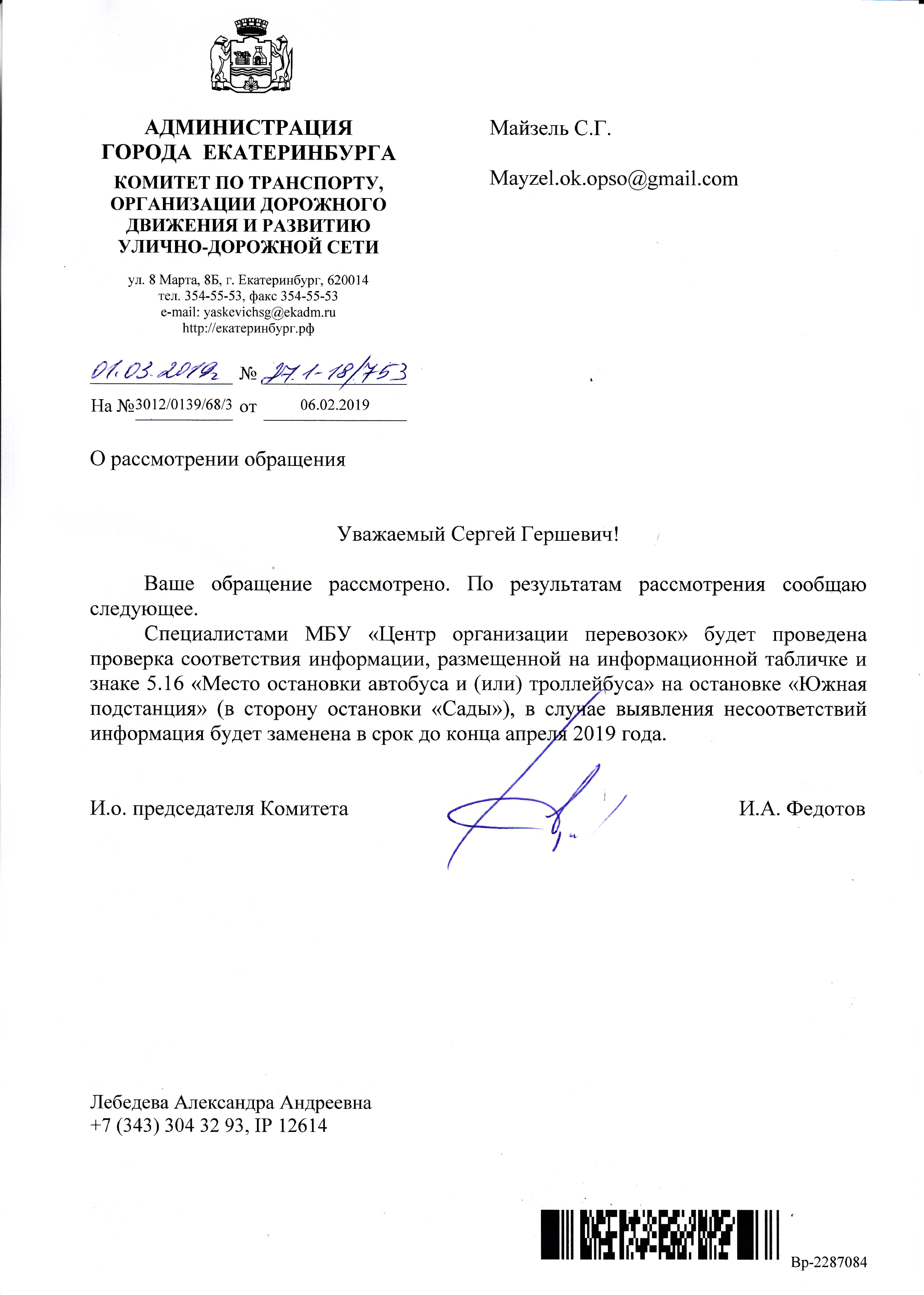 Номер жалобы:49212 Тип жалобы:Прочее Название объекта: Регион:Свердловская область Город:Екатеринбург Адрес:Селькоровская улица, 78Б Описание жалобы:Не правильный список маршрутов на знаке "Место остановки автобуса", также не соответствует списку на расписании, у остановки Южная подстанция в сторону ост. Сады Статус: