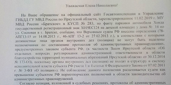 Номер жалобы:49204 Тип жалобы:Прочее Название объекта: Регион:Иркутская область Город:Братск Адрес:Сосновая улица, 14 Описание жалобы:Парковка на детской площадке Статус: