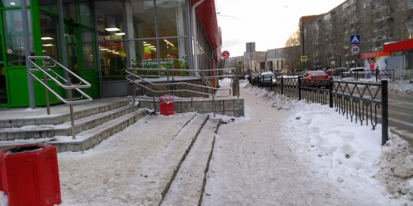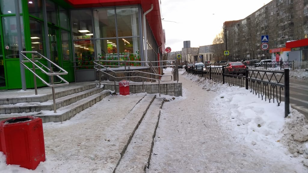 Номер жалобы:10875 Тип жалобы:Качество уборки снега на тротуарах Название объекта: Регион:Свердловская область Город:Екатеринбург Адрес:Сулимова, 67 Описание жалобы:Не очищен снег со ступеней и пандуса со стороны ул. Омской на перекрёстке с Сулимова Статус: