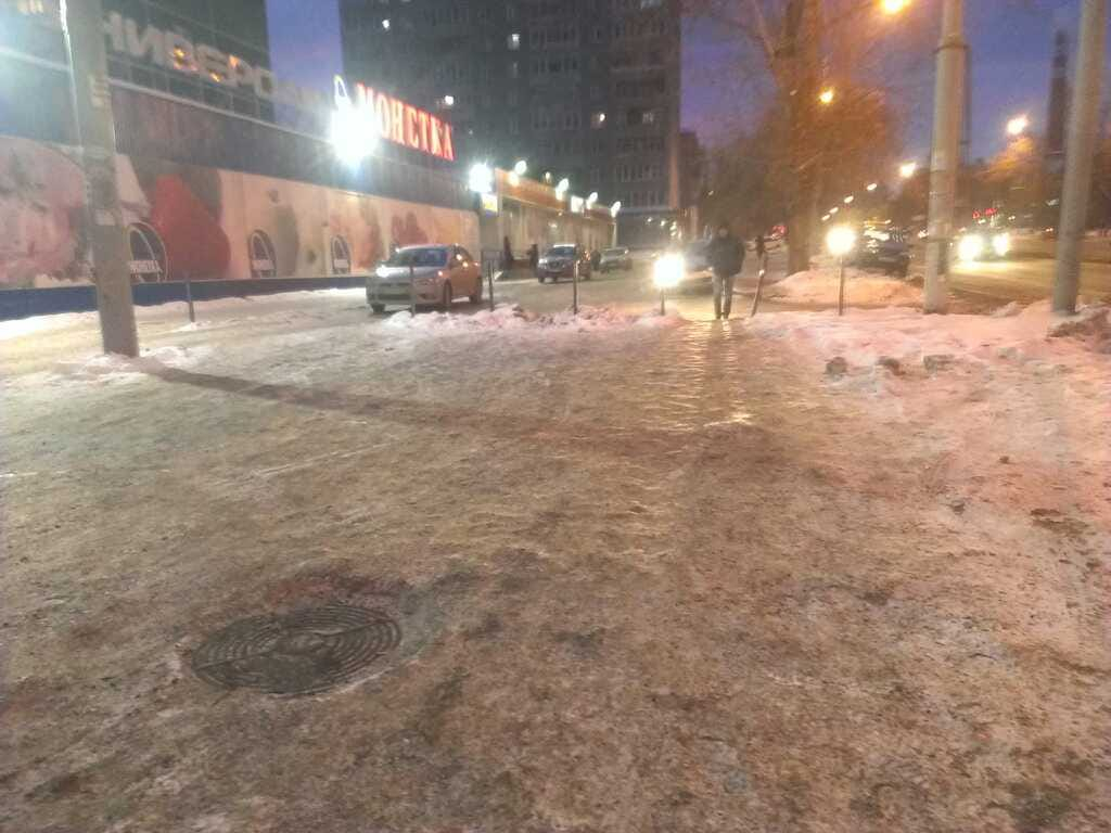 Номер жалобы:10948 Тип жалобы:Качество уборки снега на тротуарах Название объекта:Администрация Екатеринбурга Регион:Свердловская область Город:Екатеринбург Адрес:ул. Малышева, 156А Описание жалобы:На перекрёстке Малышева и Студенческой со стороны Малышева, 156 на тротуаре отсутствует уборка снега. Тротуар покрыт толстой неровной ледяной коркой. Статус: