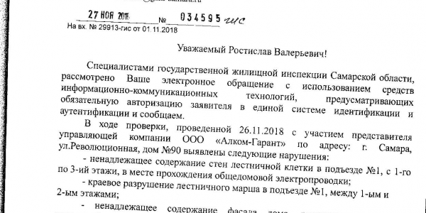 Номер жалобы:44530 Тип жалобы:Проблемы ЖКХ / дворы - Иные проблемы ЖКХ Название объекта: Город:г. Самара Адрес:ул. Революционная, 90 Описание жалобы:ода 4 назад в доме 90 по улице Революционная, в первом подъезде, загорелась шахта, в которой идет проводка. Приехали пожарники, разломали стену на 2 и 3 этаже, потушили пожар и уехали. Проводку восстановили, но не все провода пустили внутри шахты. Да и сами проломы никто не заделал. Жильцы неоднократно обращались в свою УК Алком-Гарант, но безрезультатно. Между тем провода представляют опасность для жильцов, особенно для детей, которые могут случайно схватиться за них. Да и по правилам безопасности, они должны быть спрятаны в шахте. Однако всё это игнорируется самой УК и ЖЭУ (или ЖКХ – фиг знает кто там за что отвечает).