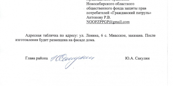 Номер жалобы:44592 Тип жалобы:Иные проблемы ЖКХ Название объекта:Администрация Красноармейского Муниципального Района Челябинской Области Регион:Челябинская область Город:с. Миасское Адрес:ул. Ленина, 6 Описание жалобы:Прошу изготовить новый знак обозначения дома (улица и номер дома), с меньшим количеством рекламы обслуживающих компаний и УК и прикрепить на многоквартирные дома. Не везде они имеются.