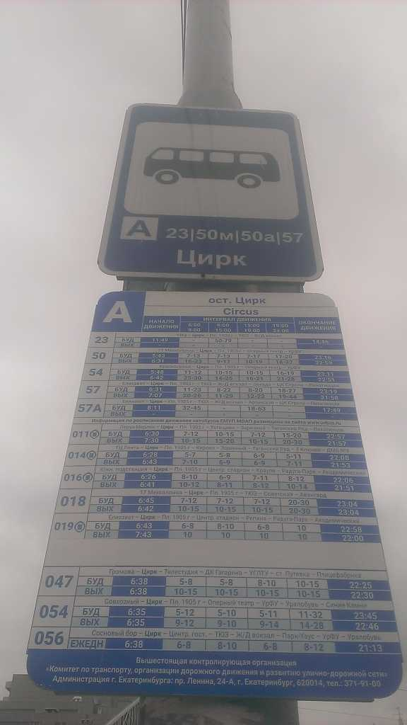 Номер жалобы:49117 Тип жалобы:Прочее Название объекта: Регион:Свердловская область Город:Екатеринбург Адрес:Екатеринбург, улица 8 Марта, 43 Описание жалобы:Не правильный список маршрутов на знаке "Место остановки автобуса" у автобусной остановки Цирк в сторону остановки Площадь 1905г. Фактически проезжают маршруты: 23,50,54,57,57а,011,012,014,016,018,019,024,047,054,056 Статус: