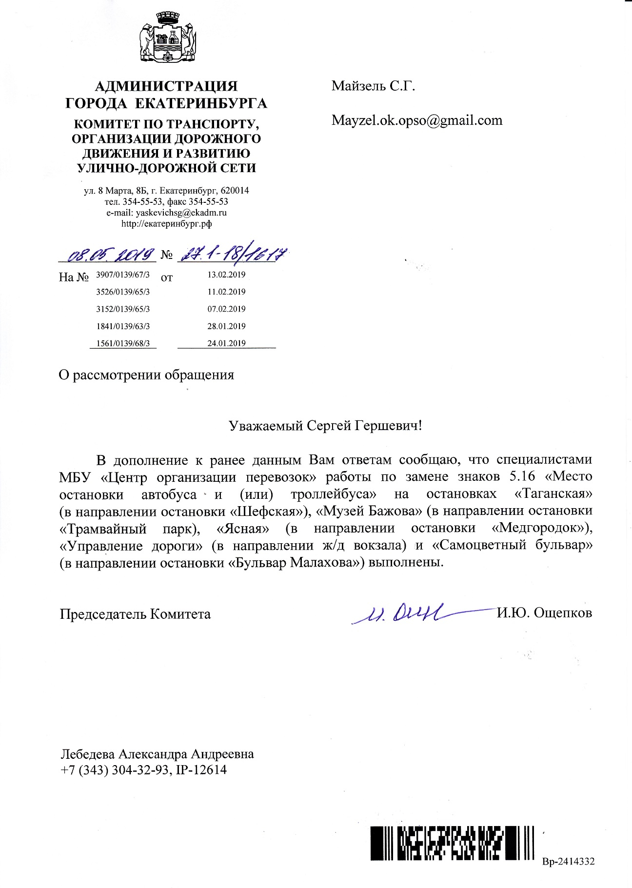 Номер жалобы:48827 Тип жалобы:Прочее Название объекта: Регион:Свердловская область Город:Екатеринбург Адрес:улица Челюскинцев, 60 Описание жалобы:Не правильный список маршрутов на знаке "Место остановки автобуса" и на навесе остановки Управление дороги в сторону ж/д Вокзала. Фактически проезжают маршруты А: 043,045 Статус: