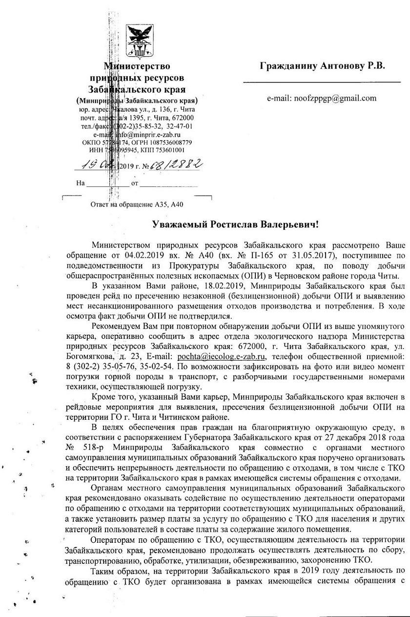 Номер жалобы:48793 Тип жалобы:Прочее Название объекта: Регион:Забайкальский край Город:Чита Адрес:Чита, Черновский район Описание жалобы:Рядом с поселком кск нелегально был взят грунт. Затем на месте образовавшийся ямы появился мусор Статус: