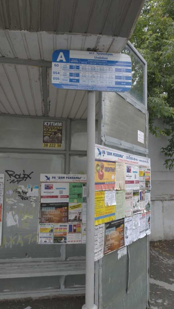 Номер жалобы:48828 Тип жалобы:Прочее Название объекта: Регион:Свердловская область Город:Екатеринбург Адрес:улица Мира Описание жалобы:Не правильный список маршрутов на знаке "Место остановки автобуса" у остановки Уралобувь в сторону ост. Мира. Фактически проезжают маршруты А: 60,054,056 Статус: