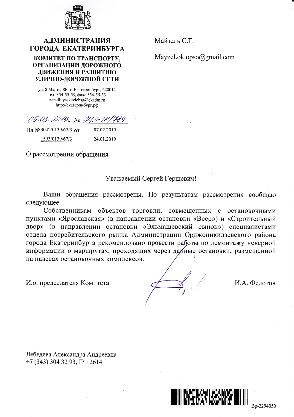 Номер жалобы:48682 Тип жалобы:Прочее Название объекта: Регион:Свердловская область Город:Екатеринбург Адрес:Шефская улица Описание жалобы:Не правильный список маршрутов на навесе остановки Строительный двор в сторону ост. Эльмашевский рынок. Фактически проезжают маршруты: 09,033,060,148 Статус: