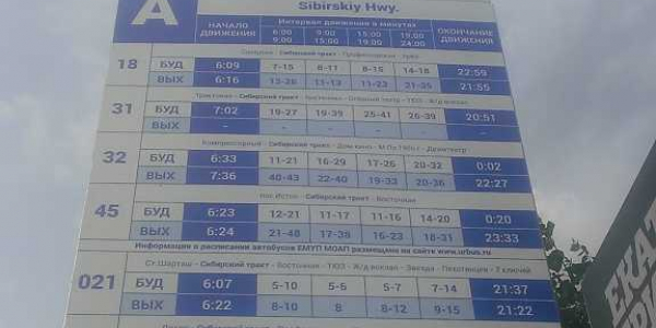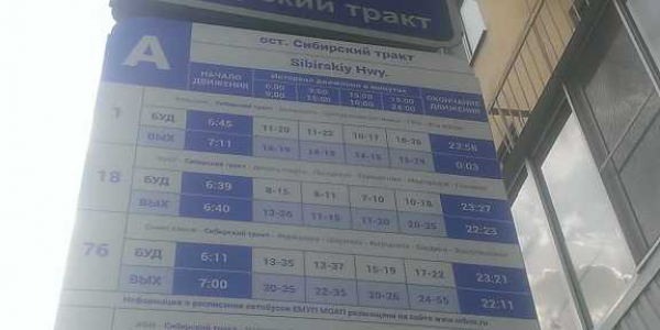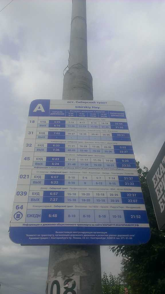 Номер жалобы:48629 Тип жалобы:Прочее Название объекта: Регион:Свердловская область Город:Екатеринбург Адрес:Екатеринбург, Восточная улица, 23В Описание жалобы:Не правильный список маршрутов на знаке "Место остановки автобуса" и на расписании у остановки Сибирский тракт в сторону ост. Шарташский рынок. На знаке указаны маршруты: 18, 31,32,45; на расписании: 18,31,32,45,021,039,64. Фактически проезжают маршруты: 18,32,45,64,039. Статус: