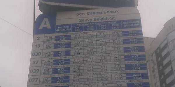 Номер жалобы:48625 Тип жалобы:Прочее Название объекта: Регион:Свердловская область Город:Екатеринбург Адрес:Екатеринбург, улица Белинского Описание жалобы:Не правильный список маршрутов на знаке "Место остановки автобуса" у остановки Саввы Белых в сторону ост. Шварца. Список на знаке расходится со списком на расписании. Фактически проезжают маршруты:А2, 19,37,05,030,077,083;Т1,6,9,15,20 Статус: