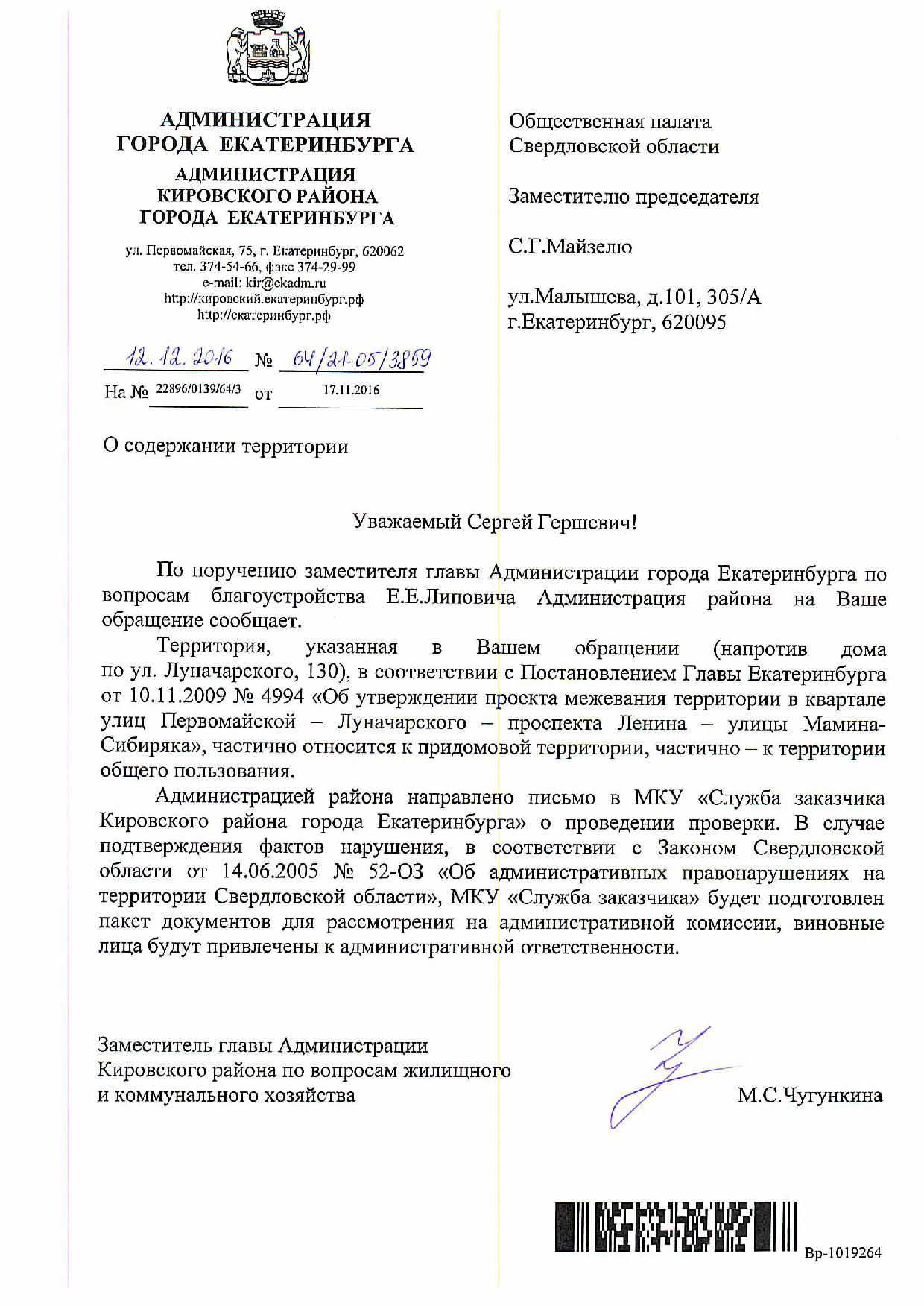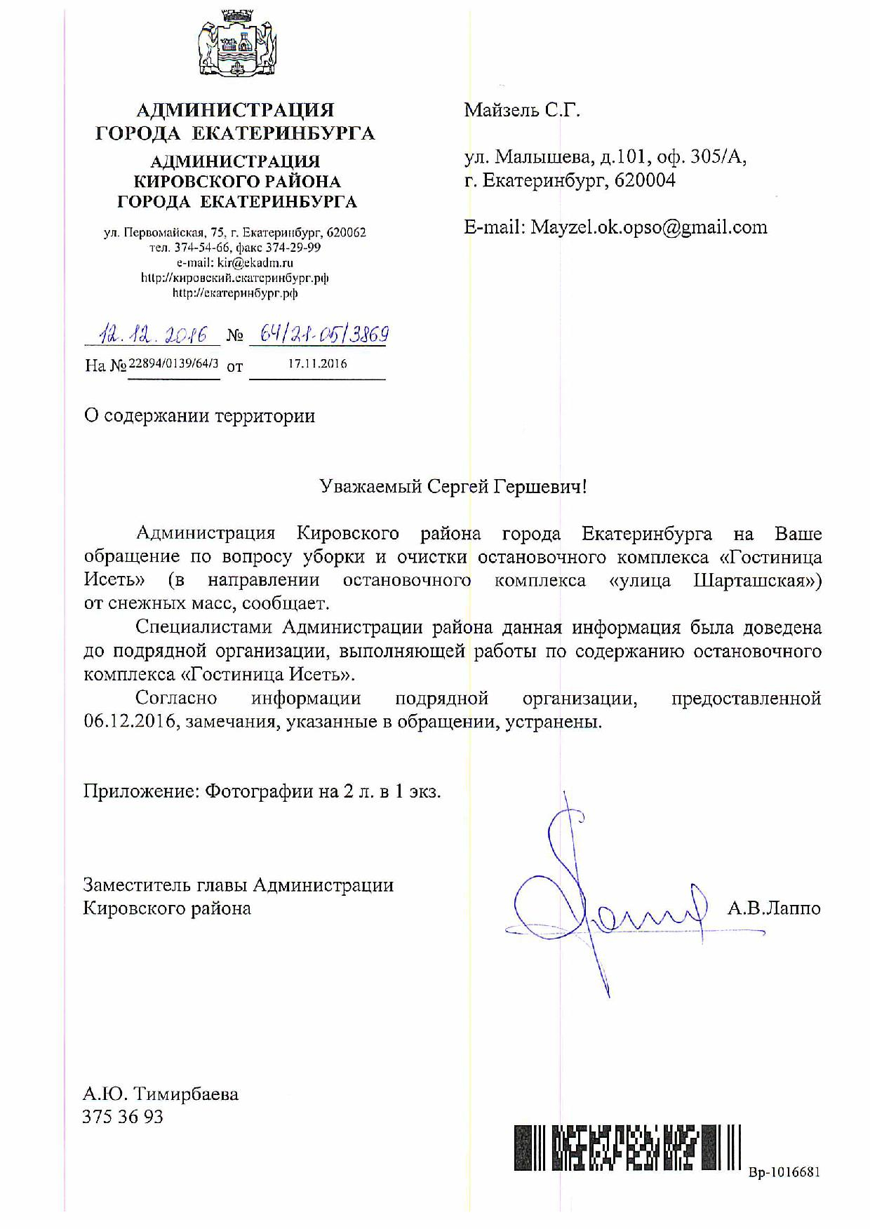 Номер жалобы:10820 Тип жалобы:Качество уборки снега на тротуарах Название объекта:Администрация Екатеринбурга Регион:Свердловская область Город:Екатеринбург Адрес:ул. Луначарского, 57 Описание жалобы:На трамвайных остановках «Шевченко» в направлении «Шарташской», «Ортопедическое предприятие» в направлении «Челюскинцев» и «Ортопедическое предприятие» в направлении «Шевченко», а также на проезжей части улицы Луначарского на входе на перечисленные остановки лежат снежные кучи, занимающие всю ширину остановки и препятствующие проходу пешеходов. Статус: