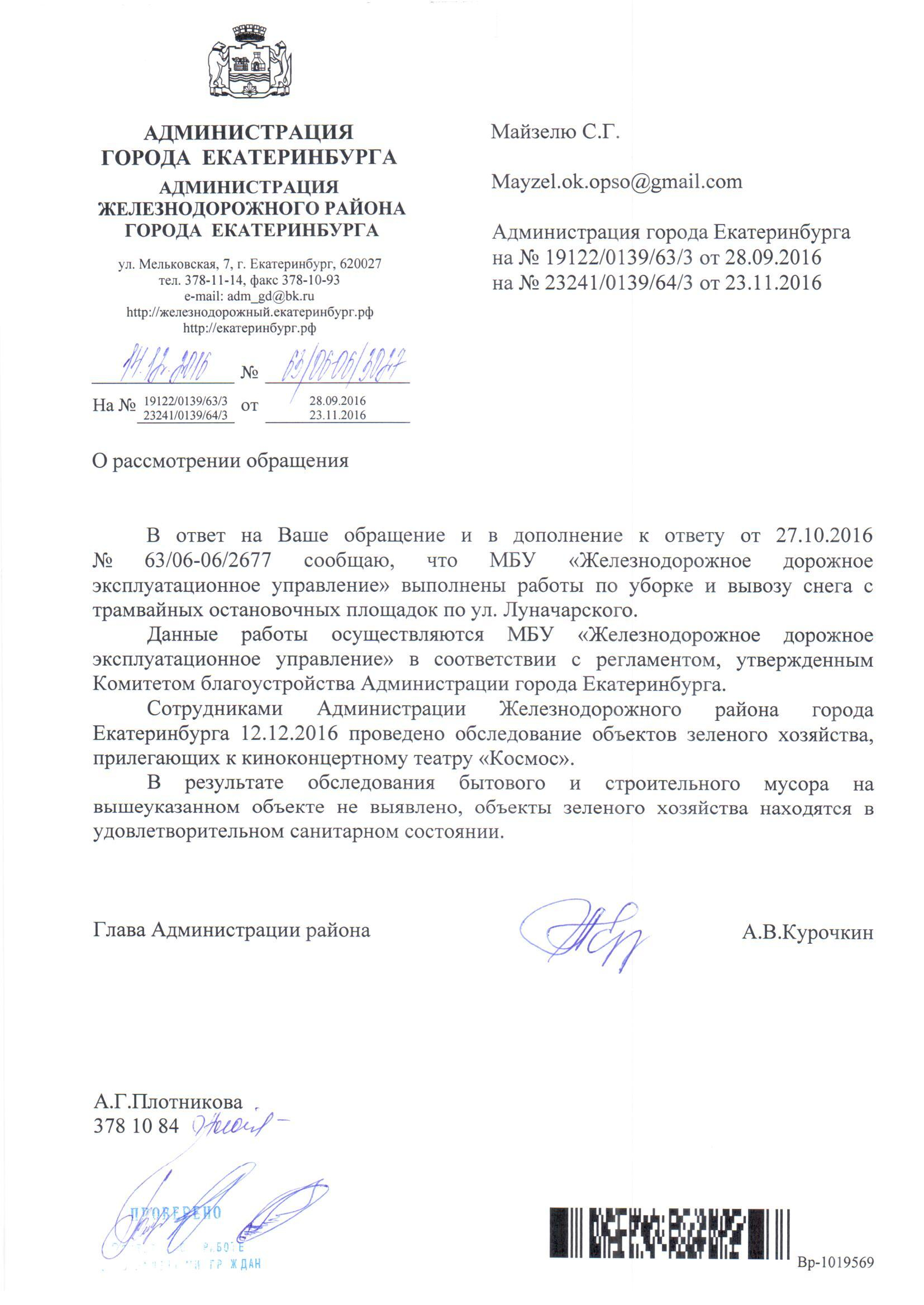 Номер жалобы:10804 Тип жалобы:Качество уборки снега на тротуарах Название объекта:Администрация Екатеринбурга Регион:Свердловская область Город:Екатеринбург Адрес:ул. Луначарского, 130 Описание жалобы:В сквере перед домом снег с дорожек и скамеек не убирается. Статус: