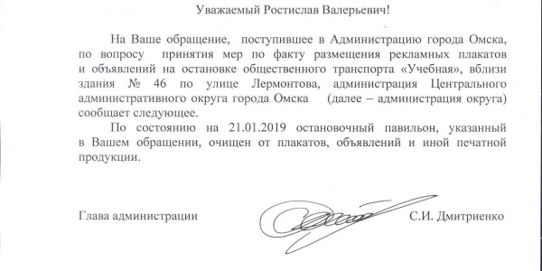 Номер жалобы:48063 Тип жалобы:Городская среда Название объекта: Регион:Омская область Город:Омск Адрес:ул. Лермонтова, 46 Описание жалобы:остановка трамвая "Учебная" изрядно увешана различными плакатами и объявлениями. Статус: