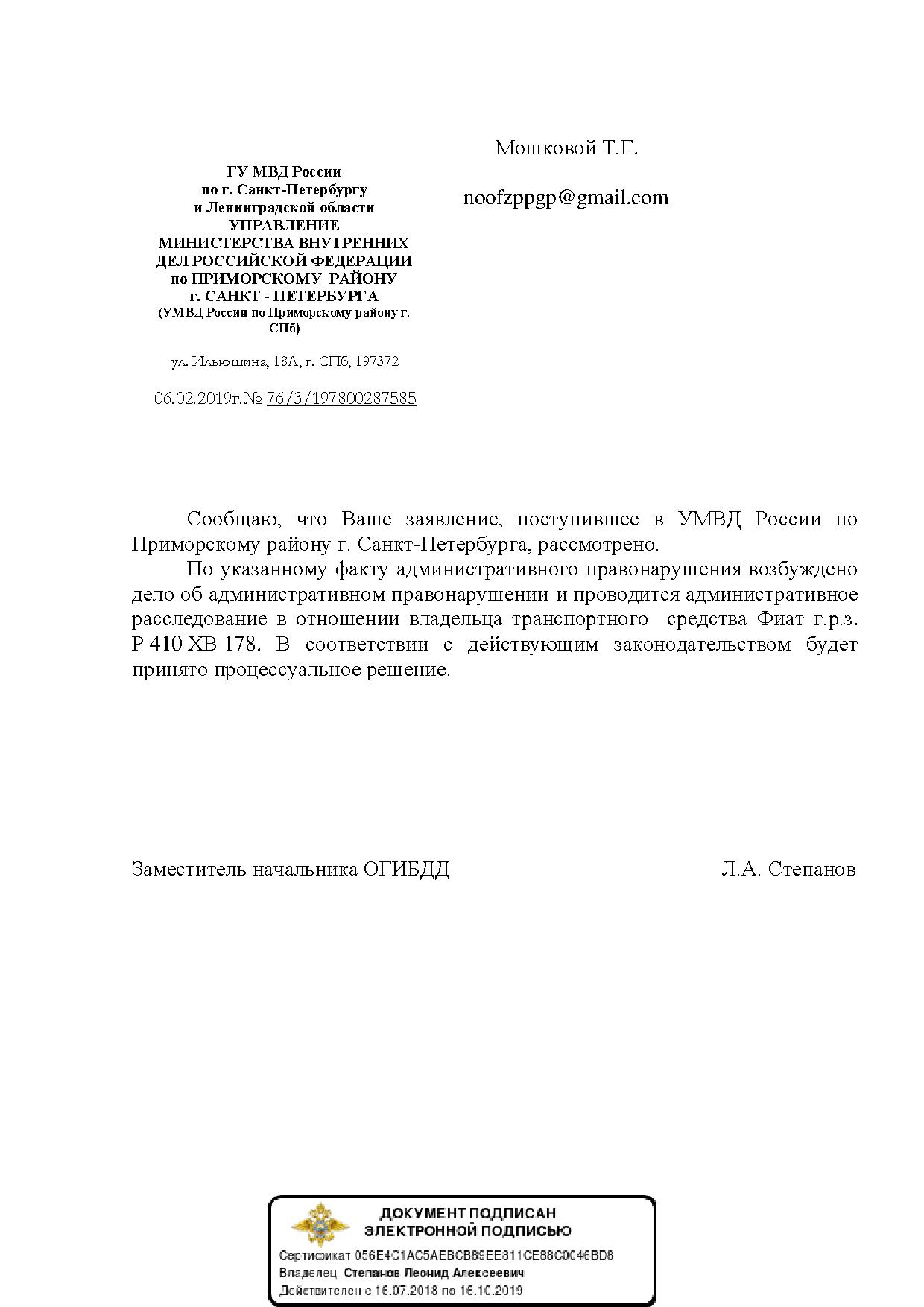 Номер жалобы:47881 Тип жалобы:Прочее Название объекта: Регион:Санкт-Петербург Город:Санкт-Петербург Адрес:ул Ситцевая, 17 к2 Описание жалобы:Неправильная парковка и нарушение тишины Статус: