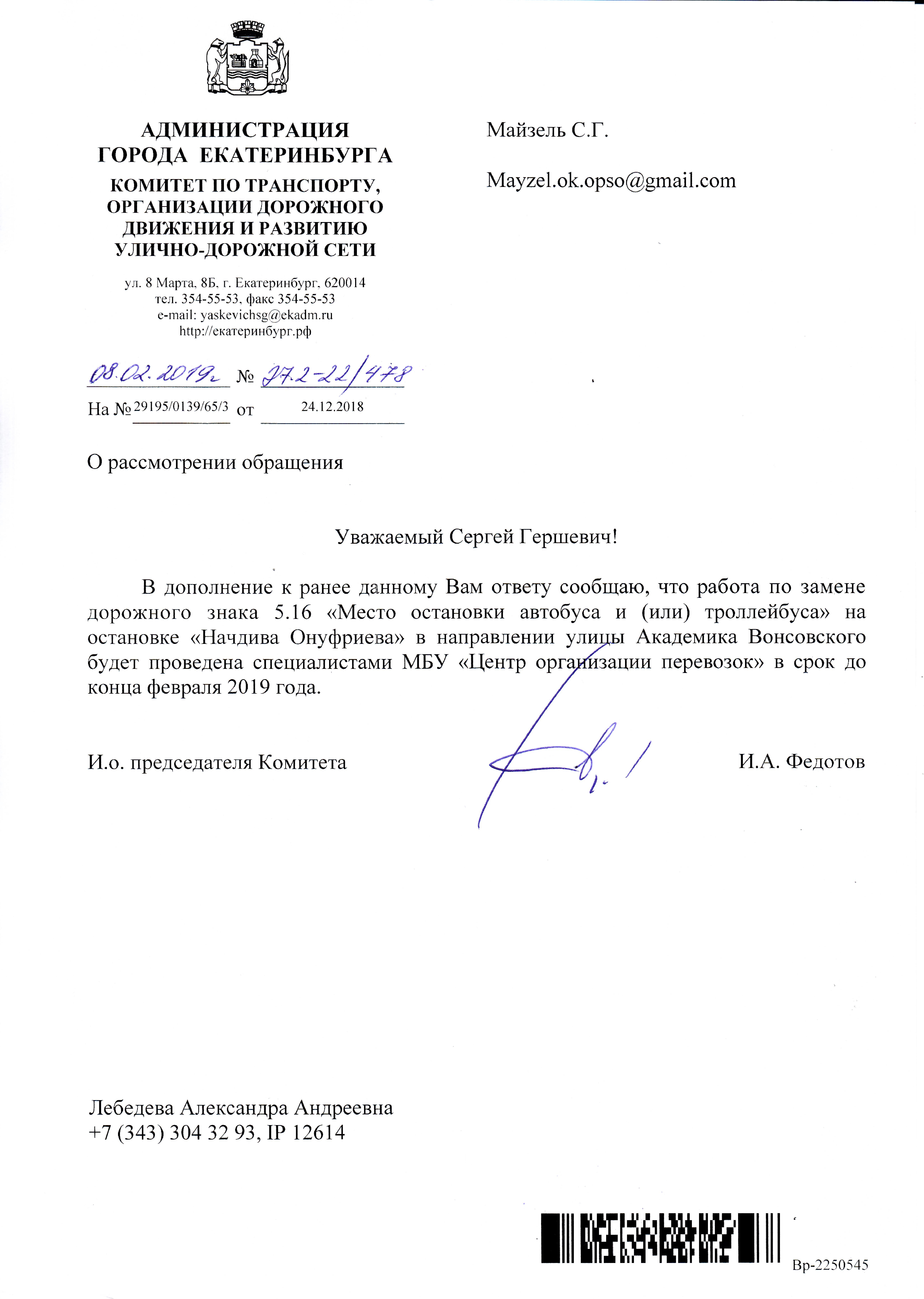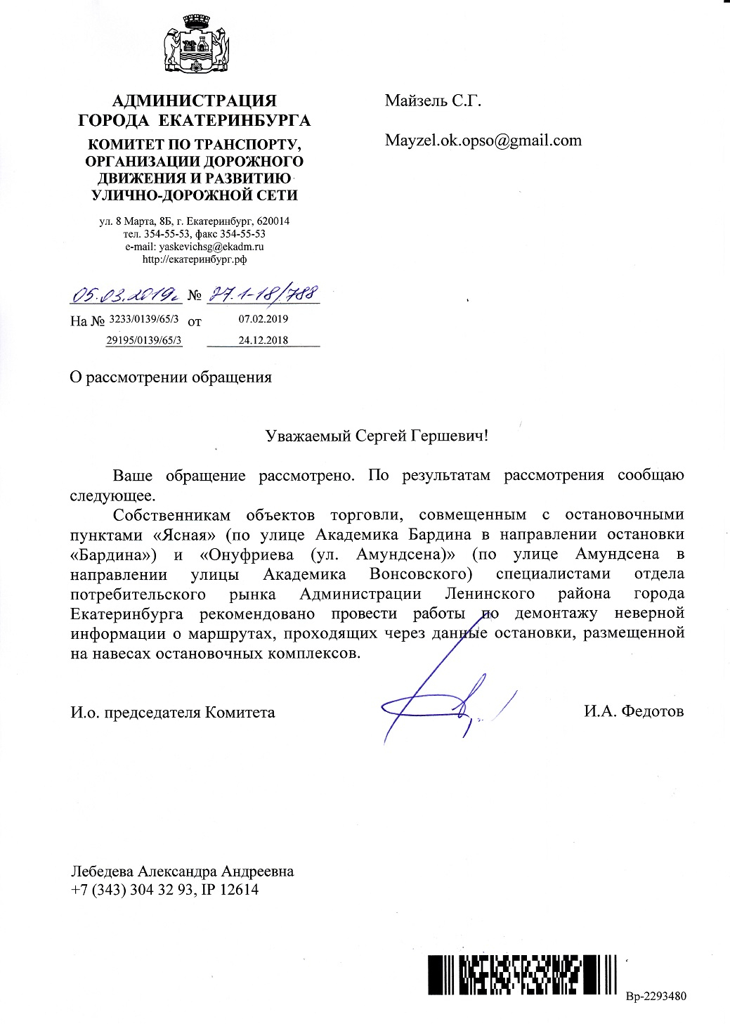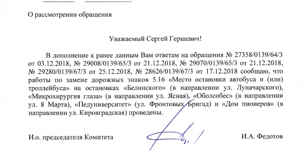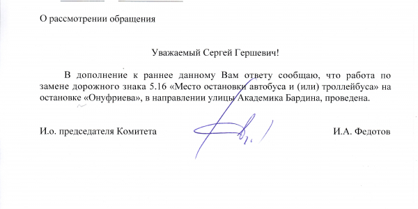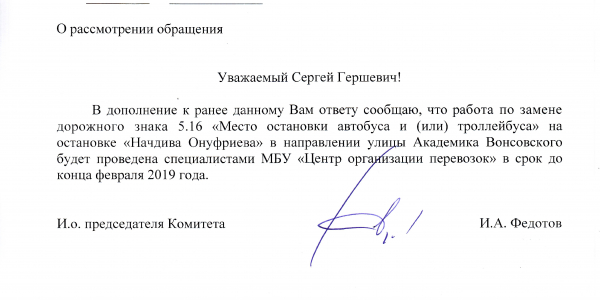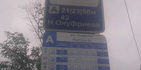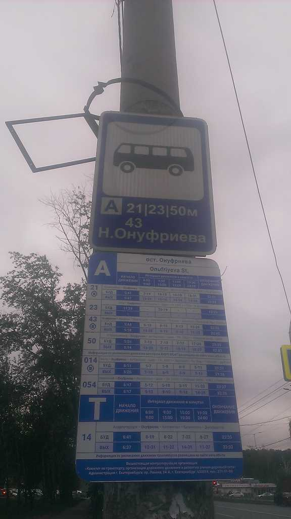 Номер жалобы:47489 Тип жалобы:Прочее Название объекта: Регион:Свердловская область Город:Екатеринбург Адрес:улица Амундсена, 73 Описание жалобы:На правильный список маршрутов на знаке "Место остановки автобуса" у остановки Онуфриева в сторону ул. Бардина. Фактически проезжают маршруты: А21,23,43,50,014,052,054,070. Т14 Статус: