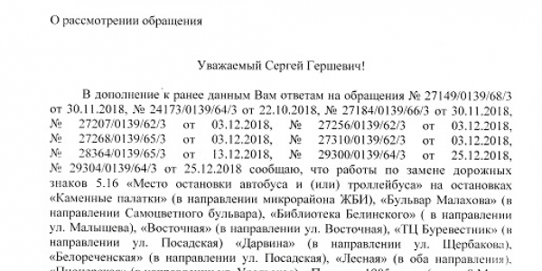 Номер жалобы:47102 Тип жалобы:Прочее Название объекта: Регион:Свердловская область Город:Екатеринбург Адрес:микрорайон ЖБИ Описание жалобы:На знаке "Место остановки автобуса" Каменные палатки по ул. Сыромолотова не правильный список маршрутов. Фактически проезжают автобусы: 15,61,039,059,060 Статус: