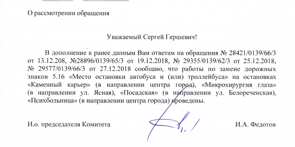 Номер жалобы:47104 Тип жалобы:Прочее Название объекта: Регион:Свердловская область Город:Екатеринбург Адрес:Екатеринбург, улица Щербакова Описание жалобы:Остановка Каменный Ручей по ул. Щербакова в сторону ул. Прониной. На знаке указаны проезжающие маршруты: А05,1719,38,039,042; Т1,6. Фактически на остановке не останавливается ОТ совсем Статус: