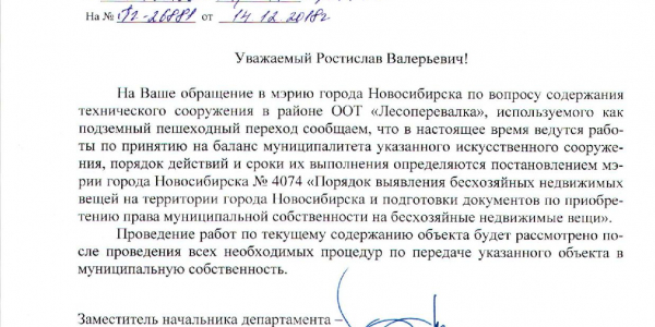 Номер жалобы:47014 Тип жалобы:Прочее Название объекта:Не Установлено Регион:Новосибирская область Город:Новосибирск Адрес:проезд Энергетиков Описание жалобы:Лесоперевалка. Света в подземном пешеходном переходе нет. Совсем. Подходы к нему не чистят. Статус: