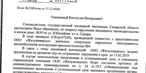 Номер жалобы:47059 Тип жалобы:Проблемы ЖКХ / дворы Название объекта: Регион:Самарская область Город:Самара Адрес:ул. Юбилейная, 39, 4 подъезд Описание жалобы:из самарской группы ГП: