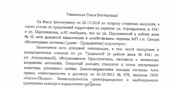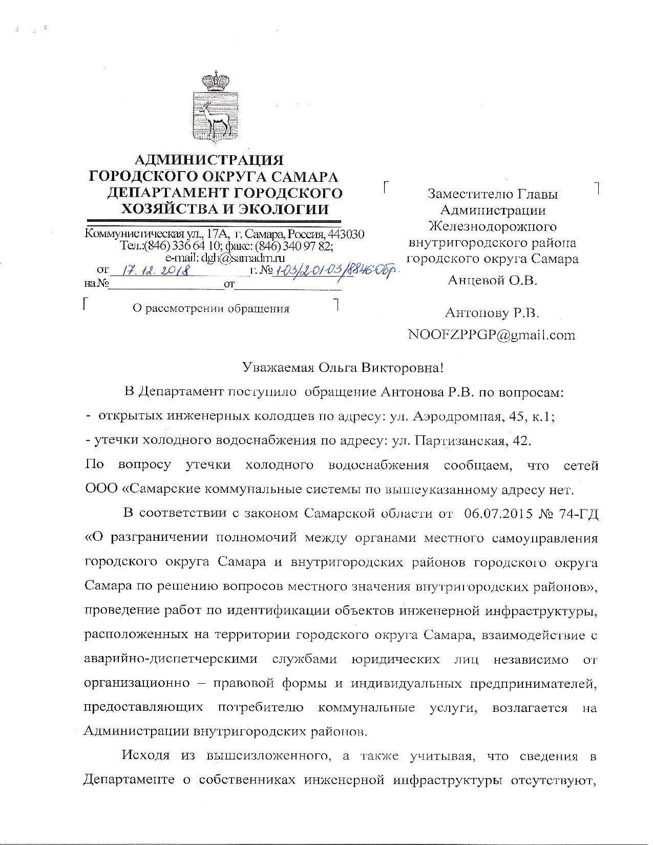 Номер жалобы:46804 Тип жалобы:Прочее Название объекта: Регион:Самарская область Город:Самара Адрес:ул Партизанская, 42 Описание жалобы:На дороге прорыв. Вода льется из обоих колодцев на проезжую часть Статус:
