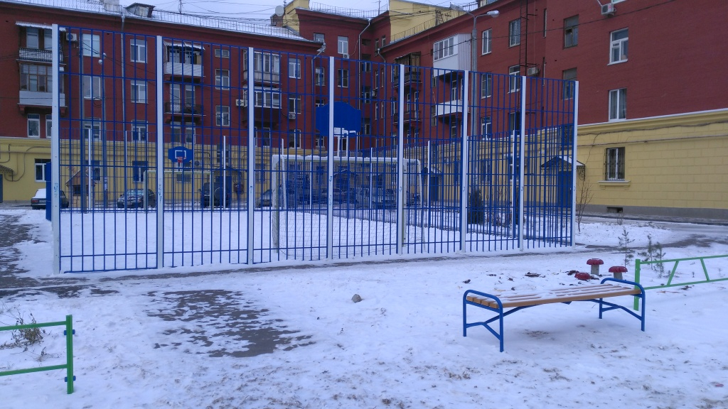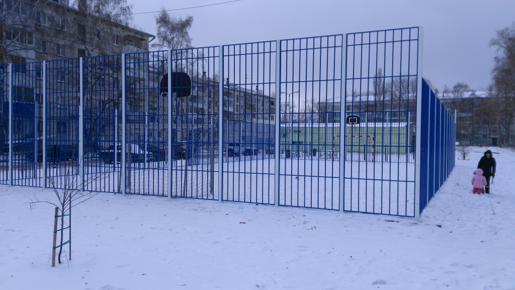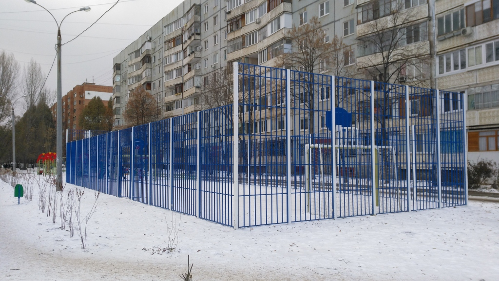 По тем же адресам согласно смете муниципального контракта №0142300048518001065 заявлена установка ограждений спортивных площадок - 304 п.м. По факту установлено 288 п.м.