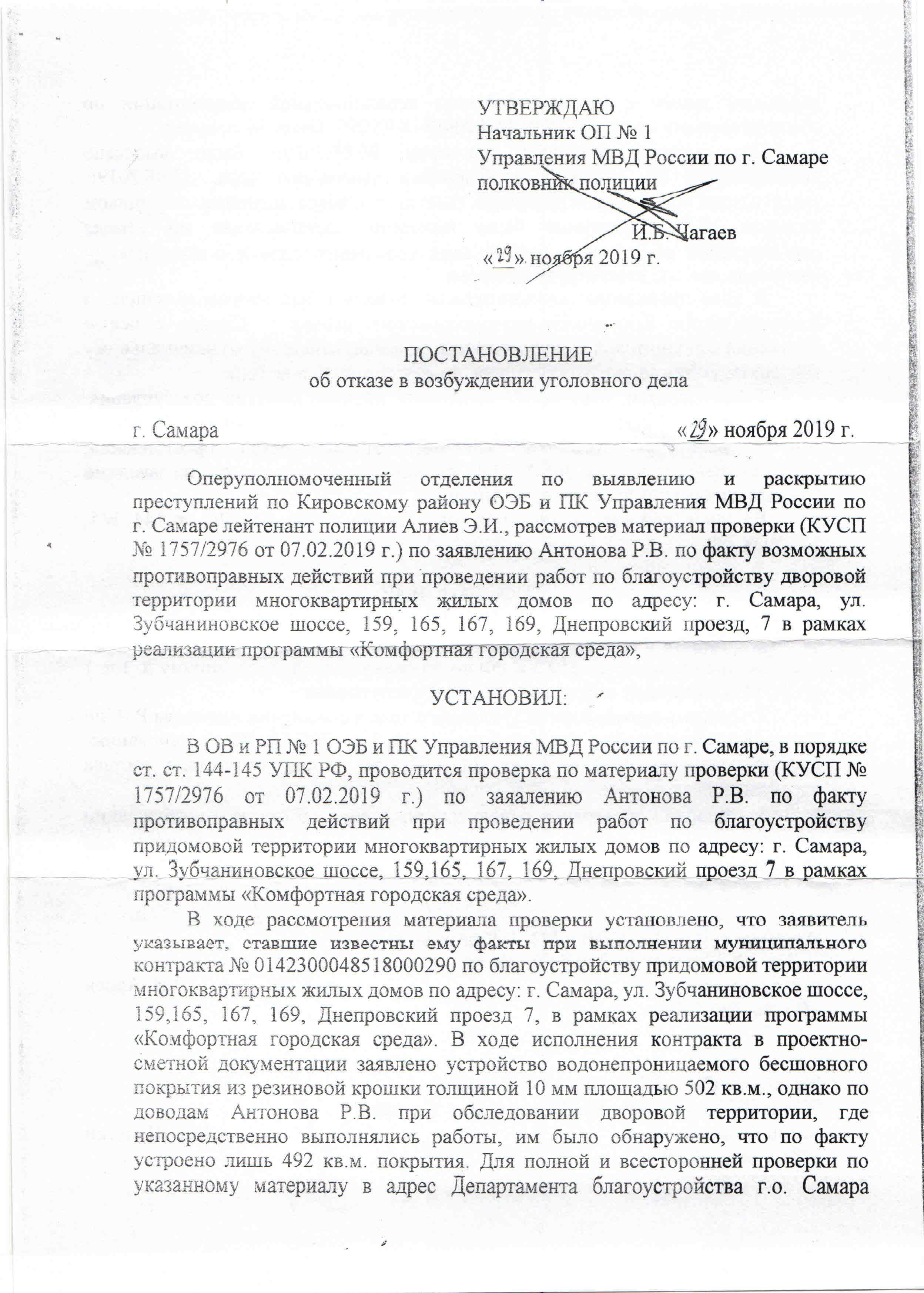 Номер жалобы:46798 Тип жалобы:Прочее Название объекта:Государственная Дума Регион:Самарская область Город:Самара Адрес:Зубчаниновское шоссе,159 Описание жалобы:Согласно сметам муниципальных контрактов №0142300048518001065 и №0142300048518001688 во дворах Кировского внутригородского района Самары по адресам Зубчаниновское шоссе,159,165,167,169, Днепровский проезд,7; Строителей,22, Гвардейская,14, Металлургов,79,81; Ташкентская,79; ул. Г.Димитрова, д.49, 65, 67; пос. Аэропорт 2, д. 10, 5, 4; ул. Черемшанская, 158 и пр. Металлургов, д. 8, 10, 10А, ул. Юбилейная 48, 50, 52, 52А, 52Б заявлена установка ограждений газона - 830 п.м. На официальном сайте администрации города Самара размещена информация об установке 592 п.м. ограждений газонов. По факту установлено 490 п.м. ограждений газонов.