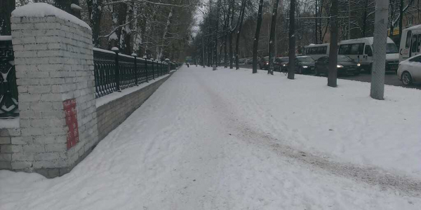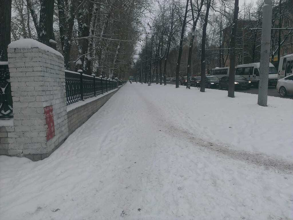 Номер жалобы:10134 Тип жалобы:Качество уборки снега на тротуарах Название объекта:Администрация Екатеринбурга Регион:Свердловская область Город:Екатеринбург Адрес:просп. Ленина, 70 Описание жалобы:Тротуар на чётной стороне Ленина на участке от Гагарина до въезда во двор через проходную арку расширяется до кустов, посаженных вдоль проезжей части. Однако уборка снега систематически производится не по всей ширине тротуара, а только примерно по 2/3 ширины основного прохода. Статус: