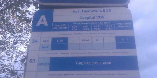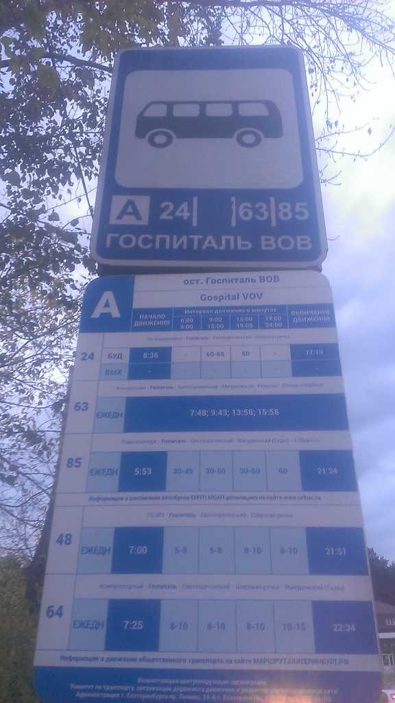 Номер жалобы:46682 Тип жалобы:Прочее Название объекта: Регион:Свердловская область Город:Екатеринбург Адрес:Светлореченская улица Описание жалобы:Остановка Госпиталь в сторону Клеверного. Не правильный список маршрутов на знаке " Место остановки автобуса ". Фактически проезжают автобусы: 24,48,63,64,85 Статус: