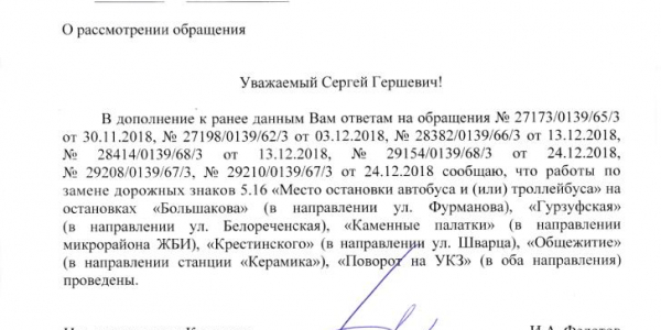 Номер жалобы:46685 Тип жалобы:Прочее Название объекта: Регион:Свердловская область Город:Екатеринбург Адрес:Екатеринбург, Посадская улица Описание жалобы:Не правильный список маршрутов на знаке " Место остановки автобуса " у остановки Гурзуфская в сторону ул. Белореченская. Фактически останавливаются маршруты: А21,045,052,077, Т7 Статус: