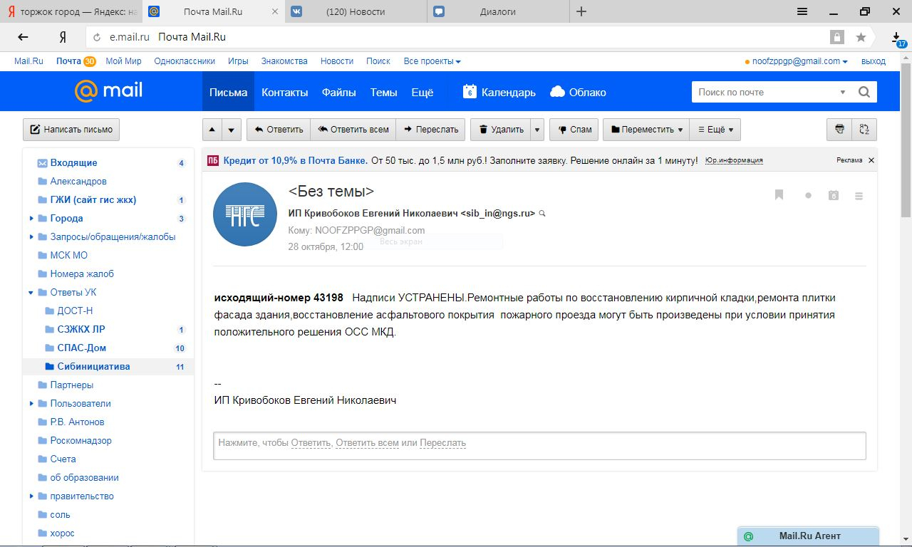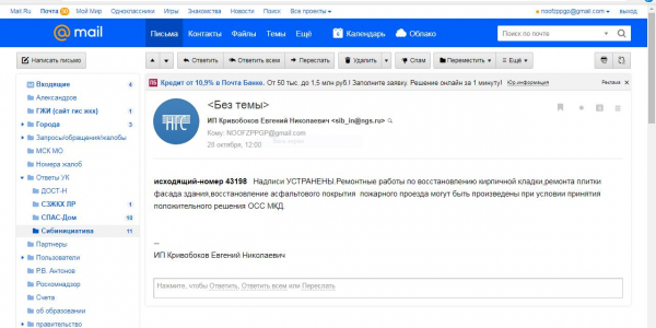 Номер жалобы:43180 Тип жалобы:Иные проблемы ЖКХ Название объекта:Управляющая Компания Город:Новосибирск Адрес:Новосибирск, 3/4 улица Курчатова Описание жалобы:Фасад здания разрисован Статус: