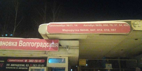 Номер жалобы:46641 Тип жалобы:Прочее Название объекта: Регион:Свердловская область Город:Екатеринбург Адрес:Екатеринбург, улица Амундсена, 47А Описание жалобы:Не верный список маршрутов автобусов на навесе остановки Волгоградская в сторону ул. Бардина. Фактически проезжают автобусы: 37,42,46,50,54,76,014,047,054 Статус: