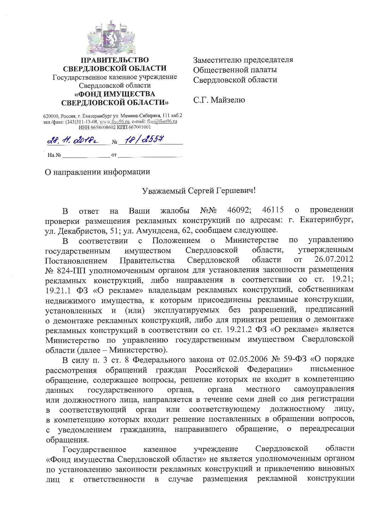 Номер жалобы:46092 Тип жалобы:Прочее Название объекта:Мугисо Регион:Свердловская область Город:Екатеринбург Адрес:ул Амундсена, 62 Описание жалобы:Рекламные щиты перекресток Амундсена-Бардина. Через дорогу Амундсена 62 Статус: