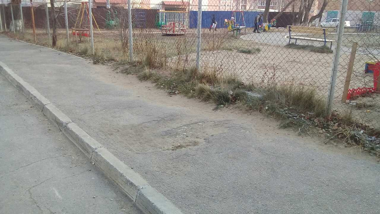 Номер жалобы:45910 Тип жалобы:Прочее Название объекта: Регион:Самарская область Город:Самара Адрес:Самара, улица Карбышева, 65Б Описание жалобы:Тротуар возле детской площадки Статус: