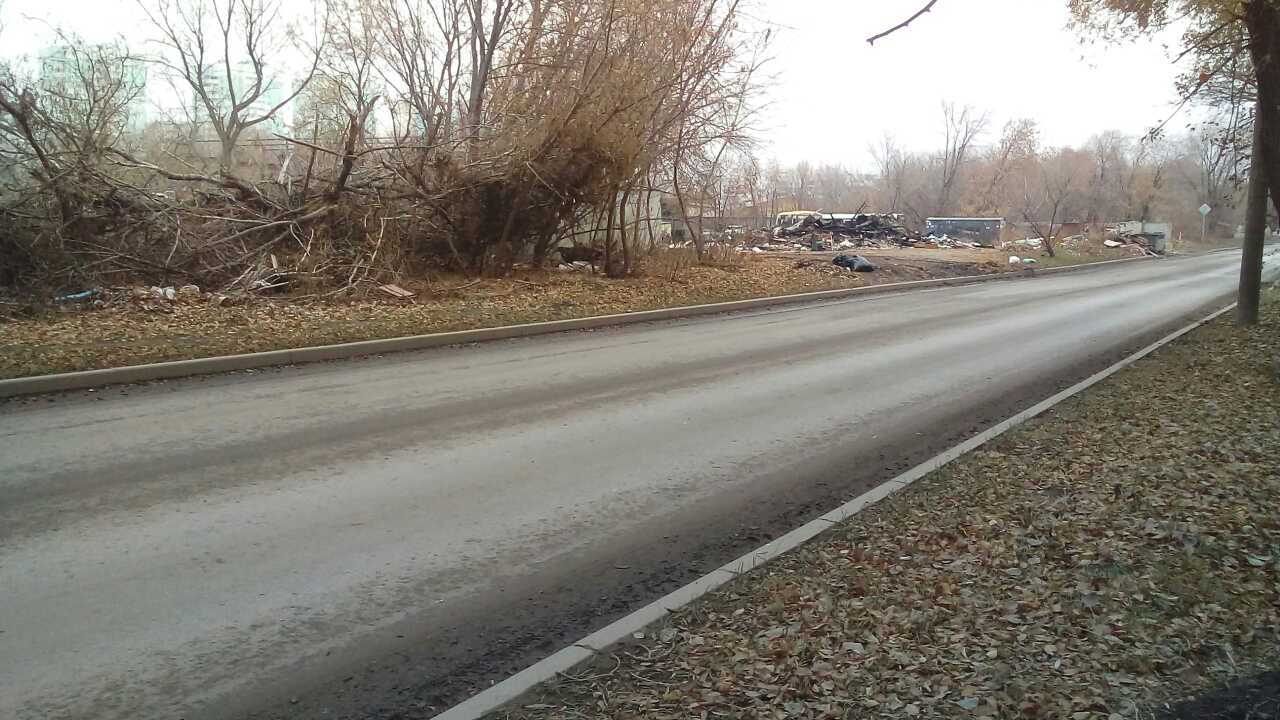 На участке улицы от пересечения с улицей Ивана Булкина по его противоположной стороне имеются свалки различного мусора и спиленные деревья Статус: